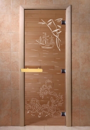 Дверь стекло Бронза с рисунком «Голубая лагуна» коробка липа/берёза
