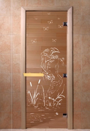 Дверь стекло Бронза с рисунком «Камышовый рай» коробка липа/берёза