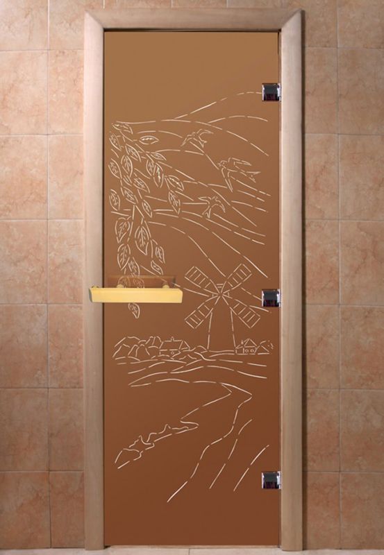 Дверь стекло Бронза с рисунком «Мельница» коробка липа/берёза