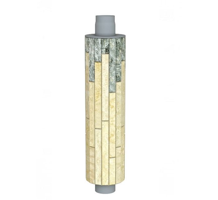 Дымовые газы, проходя через дымоход экономайзер, закручиваются и отдают тепло по максимуму. Изготавливается из черной стали. Дымоход рассчитан на весь срок службы печи. Использование дымохода-экономайзера помогает быстрее прогреть парную комнату.