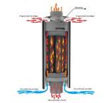Дымовые газы, проходя через дымоход экономайзер, закручиваются и отдают тепло по максимуму. Изготавливается из черной стали. Дымоход рассчитан на весь срок службы печи. Использование дымохода-экономайзера помогает быстрее прогреть парную комнату.