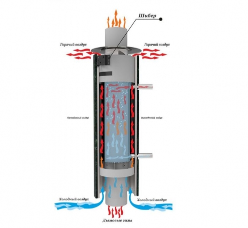 В комплекте идёт регулятор тяги, а так же в дымоходе есть регулятор конвекционного воздуха. Монтируется сразу на печь.