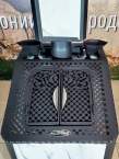 Печи Гранд Профи имеют каменку объемом 200 кг, удобную и понятную систему подачи и распределения воды на камни. В комплекте печи предусмотрены воронки приемники устанавливаемые с права и слева от дымохода в верхней части печи, что дает прямой доступ для поддач на систему орошения расположенную в глубине каменки с права и с лева над топочной частью печи, в зоне самых горячих камней. Система орошения представляет собой перфорированные лотки во всю длину каменки соединенные посредством гофрошланга с воронками сверху печи. Данная система позволяет получать неограниченный объем пара , так как задействует сразу большую площадь камней. А за счет равномерного орошения мелкими струйками, камни в меньшей степени подвержены выстужению, тем самым достигается стабильность качества пара на всем протяжении парения.