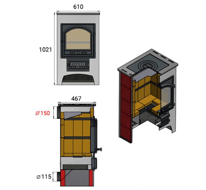 Печь-Камин ПК-02 (205) с плитой ВЕЗУВИЙ (песчаник)