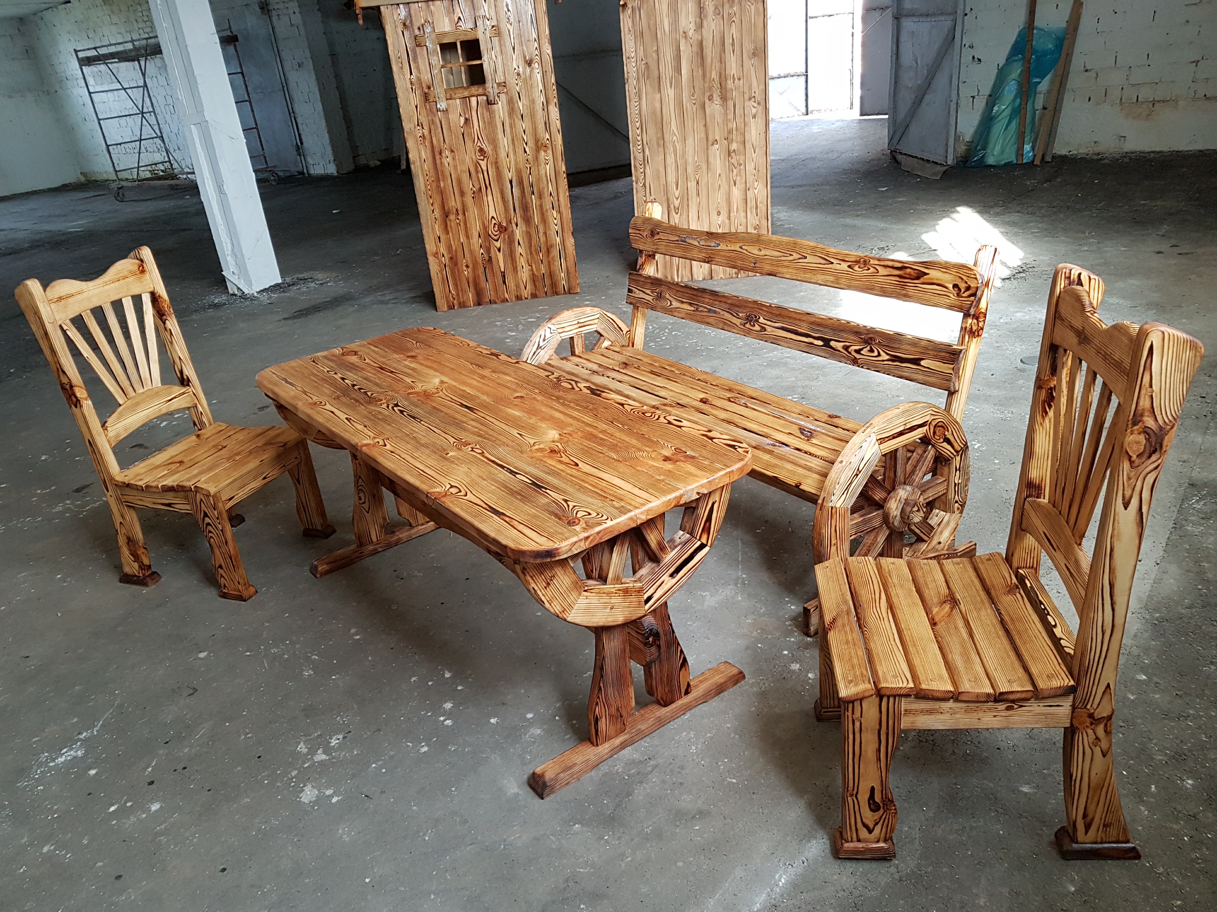 Деревянные столы, стулья, шкафы и многое другое – всё это ждет Вас в нашем выставочном зале. Произведенные из хорошей древесины и прошедшие всю необходимую обработку, эти предметы мебели станут достойным, а главное – удобным, антуражем для вашего загородного дома и бани на участке. Классический цвет – под орех, вишню и дуб, в сочетании с качественной сантехникой, повысят комфортность отдыха и оставят неизгладимые приятные впечатления.